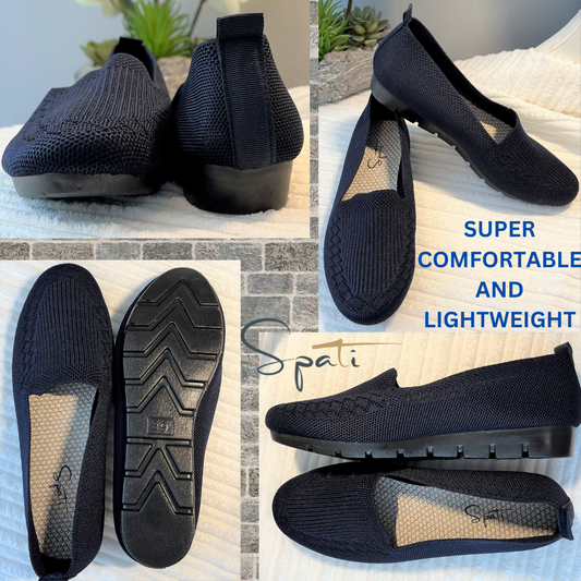 SPATI Women's Knitting Mesh Flat Walking Shoes