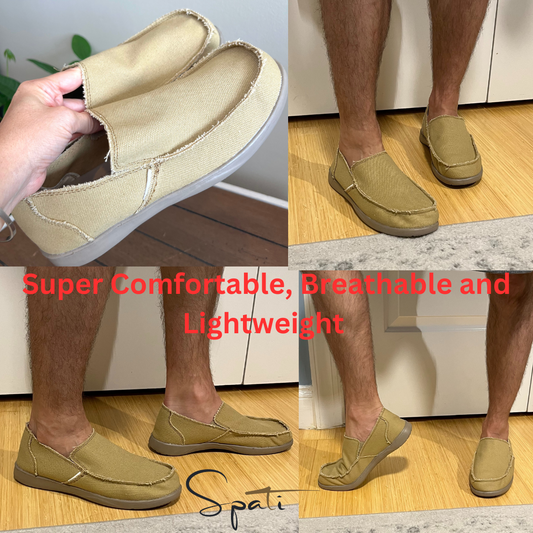 SPATI Men's Canvas Linen Slip On Loafer Lightweight Breathable Casual Travel Office Beach Walking Shoes for Men